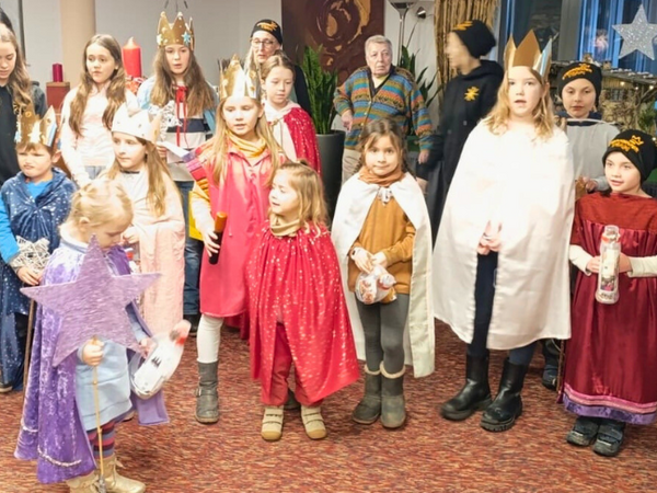Auch in diesem Jahr besuchten die Sternsinger wieder das Wohnen am Kurhaus und sorgten für eine besondere Atmosphäre. Zahlreiche Mieterinnen und Mieter hatten sich bereits frühzeitig im Foyer eingefunden, um die kleinen und großen Königinnen und Könige herzlich zu empfangen.